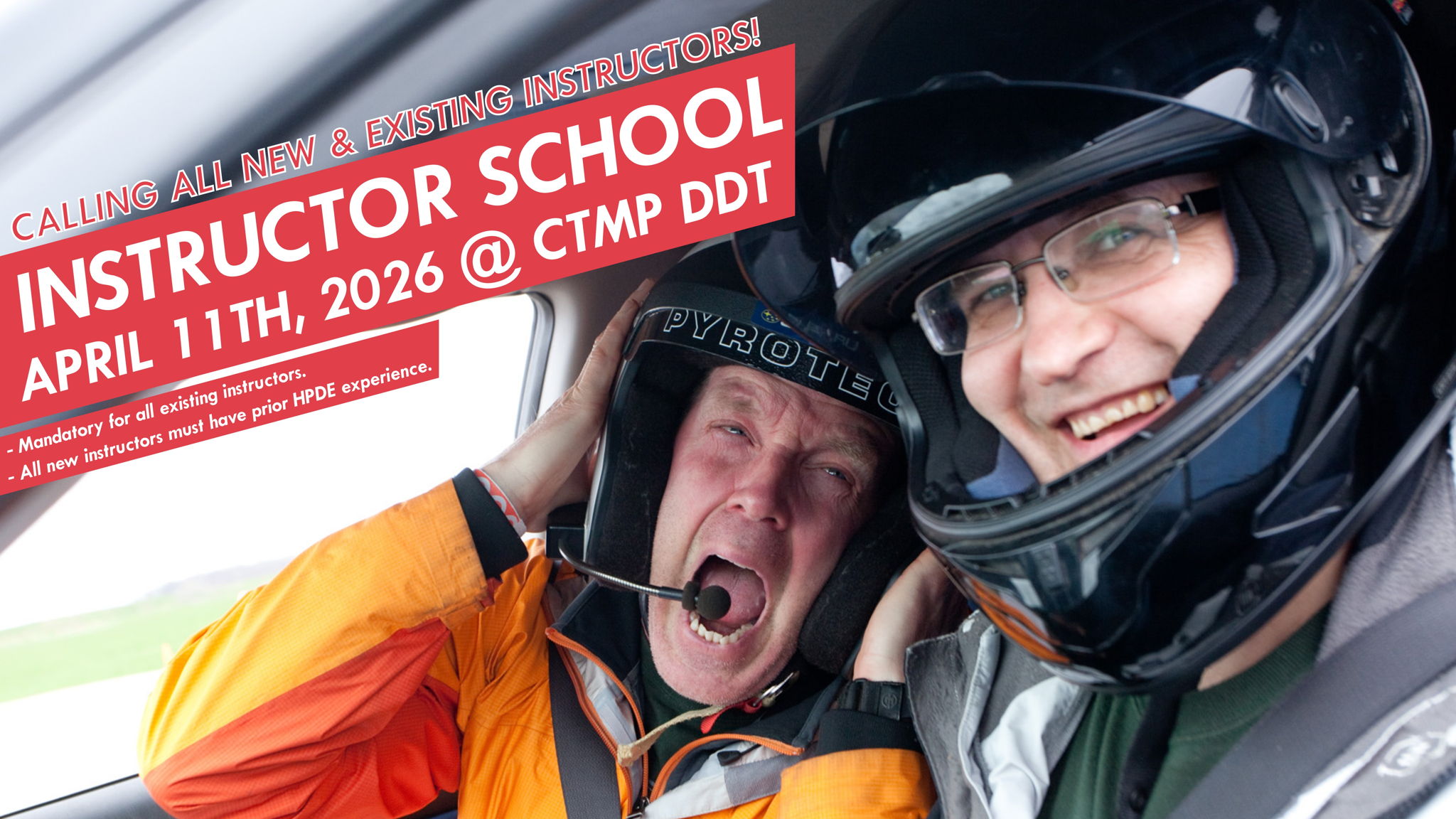 Upon successful completion, you will be allowed to instruct with us at our annual Time Attack school happening at the CTMP-DDT and upon further training / sign-off, also the CTMP-GP track.
